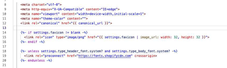 In this example, canonical tags are created with {{ canonical_url }}. Your theme may implement canonical tags differently.